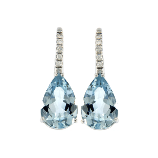 Orecchini in oro bianco 18 kt con zaffiro blu ovale 5x4mm e 0.24 kt di diamanti GVS1